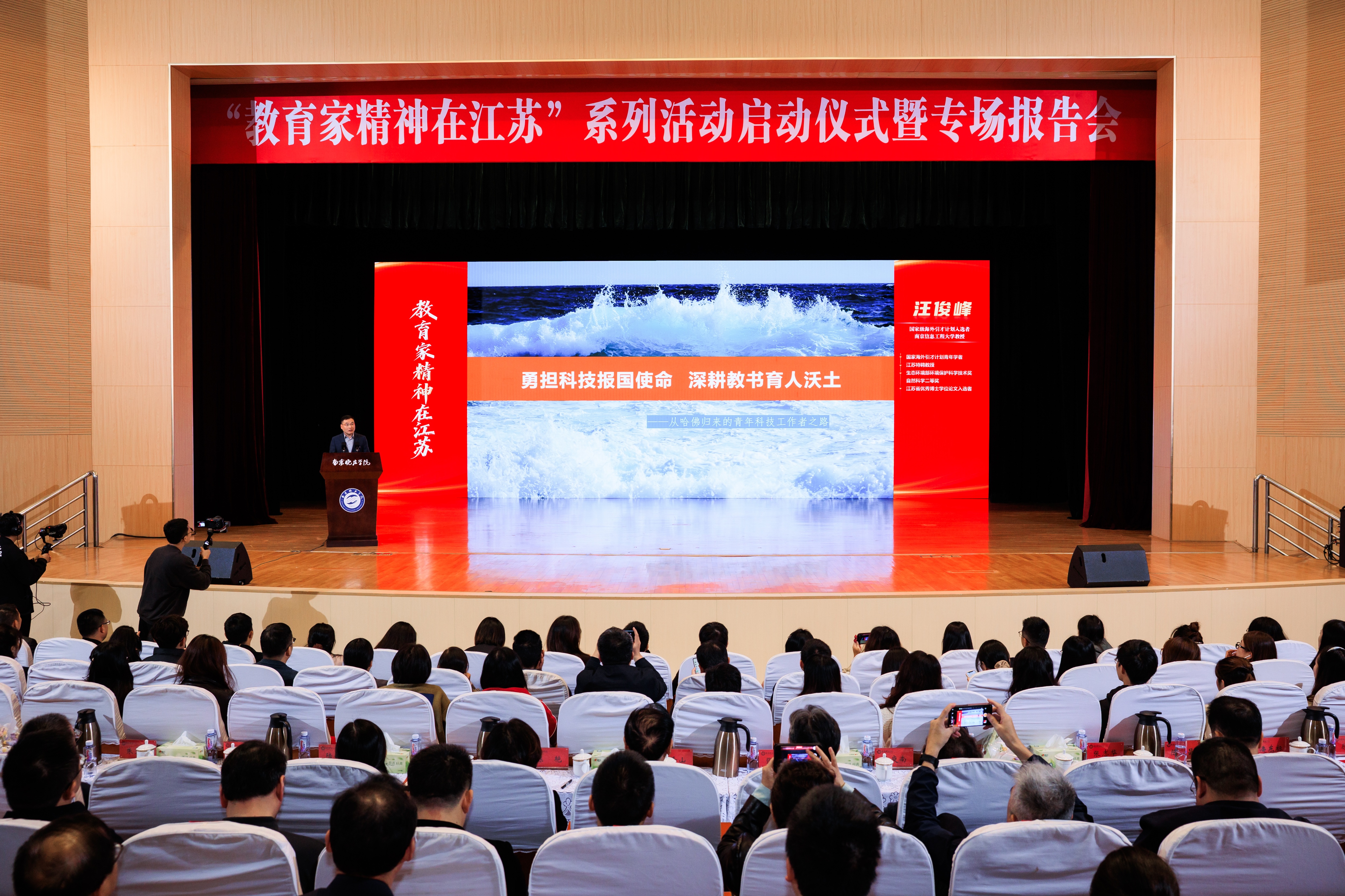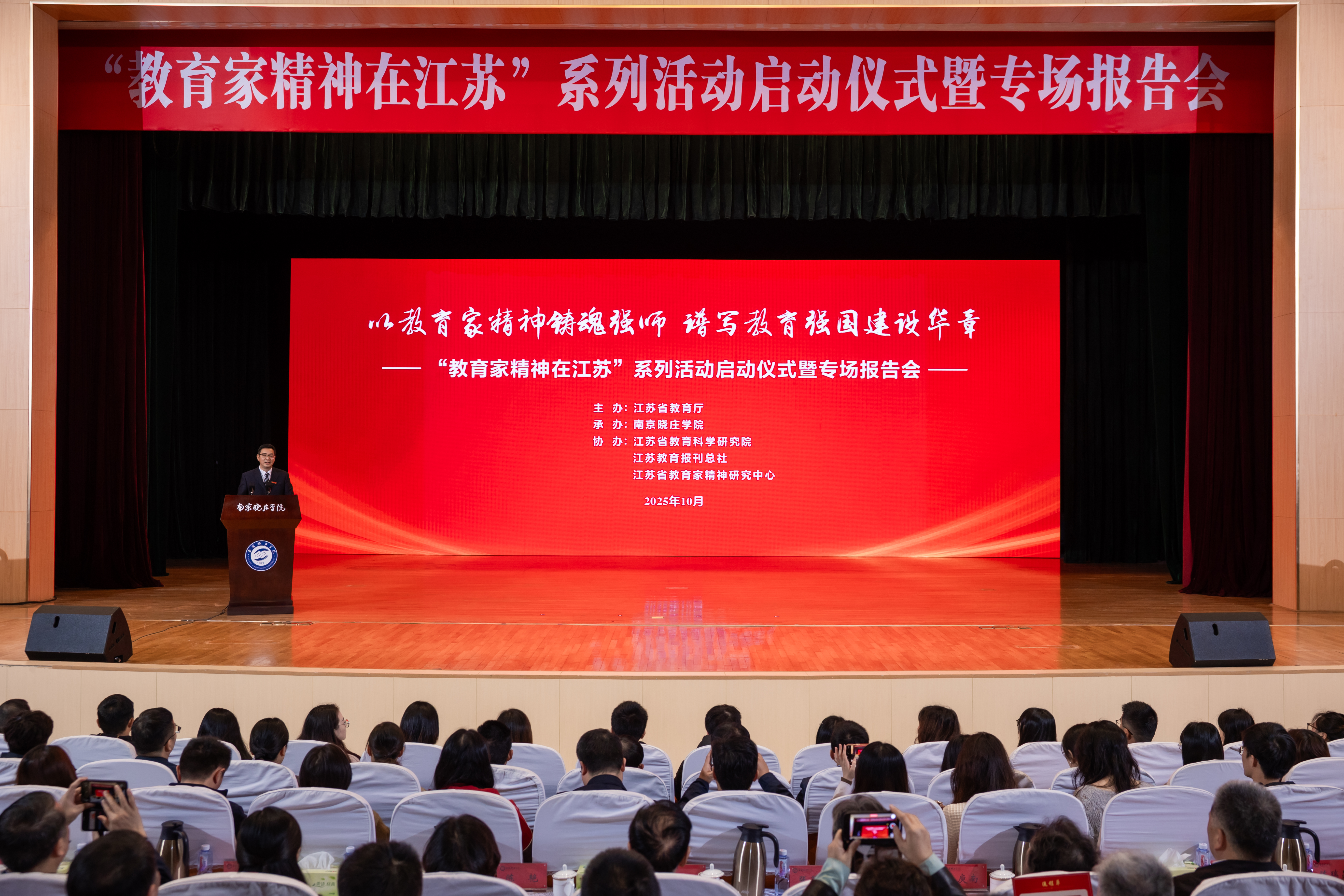 10月31日,“教育家精神在江苏”系列活动启动仪式暨专场报告会在南京举行。本次活动由江苏省教育厅主办,南京晓庄学院承办,江苏省教育科学研究院、江苏教育报刊总社、江苏省教育家精神研究中心协办。我校副校长朱大梅受邀出席,应急管理学院汪俊峰教授受聘为江苏省教育家精神宣讲团成员,并作为宣讲成员之一在大会宣讲。