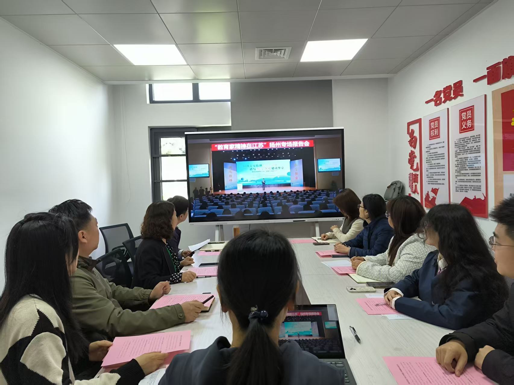 为深入学习贯彻习近平总书记关于大力弘扬教育家精神的重要指示要求,引导广大教师将心有大我、至诚报国的理想信念等教育家精神核心内涵转化为思想自觉与行动自觉,2026年4月24日,由江苏省教育厅主办的“教育家精神在江苏”专场宣讲会分别在扬州、泰州两地隆重举行。南京信息工程大学组织学校教师通过线上直播同步收看,共同聆听教育榜样的育人故事,感受教育家精神的磅礴力量。